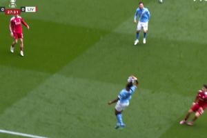 体育资讯04月04日讯 足总杯1/4决赛,曼城坐镇主场对阵利物浦,比赛第28分钟,皮球即将出边线,塞梅尼奥熟练捞球秀了一手。